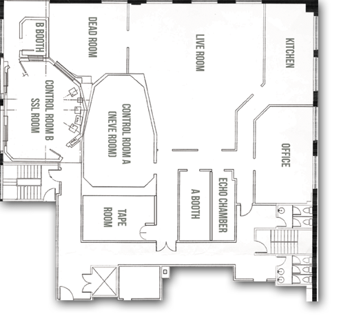 The 'dead room' (18' x 18') is wired to both the Neve and SSL suites, and can serve a wide variety of purposes. The room sounds great for slightly more 'dead' sounding drums, and in particular since we added hardwood floors and a few barrel abfusors to the ceilings, its a good alternative to the live room for guitars, bass, and even vocals.
